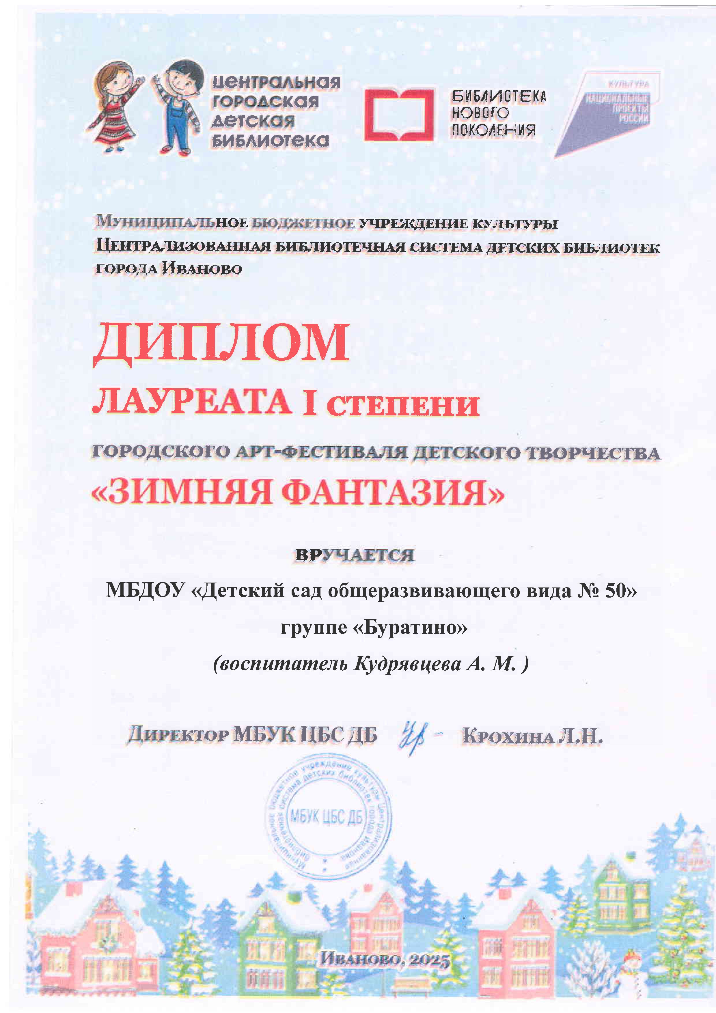 В субботу 20 декабря в ЦГДБ состоялась церемония награждения лауреатов Городского АРТ - фестиваля детского творчества "Зимняя фантазия"
