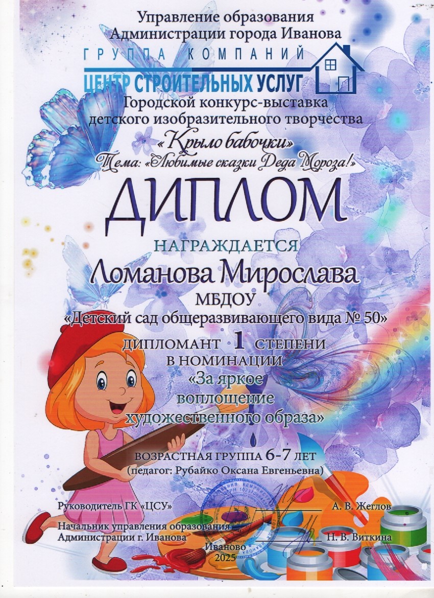 Поздравляем нашу воспитанницу подготовительной группы Ломанову Мирославу с победой в конкурсе и желаем творческих успехов !